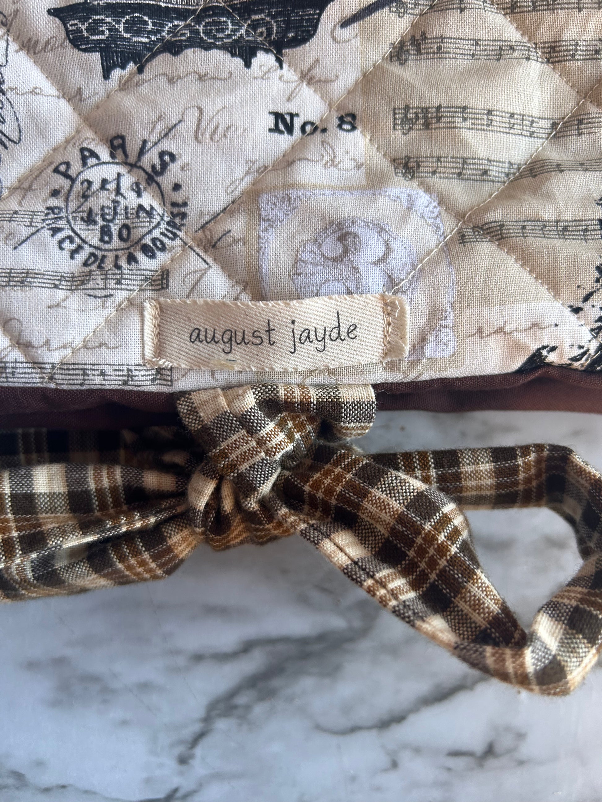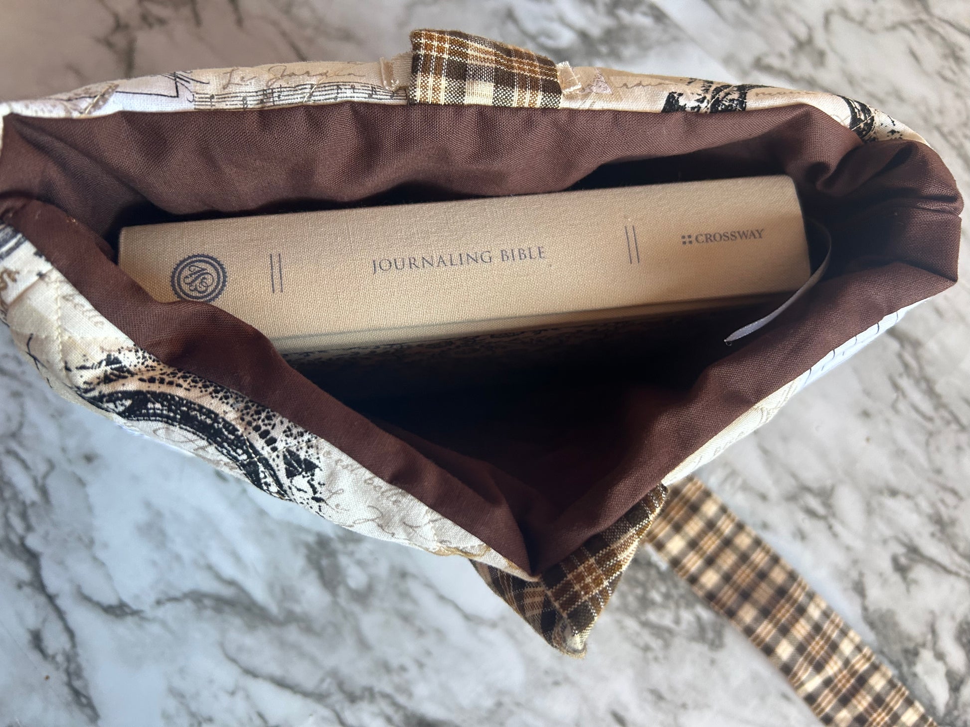 This handmade with love book bag can comfortably fit The Summer I Turned Pretty, Love and Gelato, and a reading journal, or your Bible with your highlighters, stickers, and pencils. It has a diamond quilt, a rich, chocolate brown interior, and a brown, plaid ribbon to close it with style!